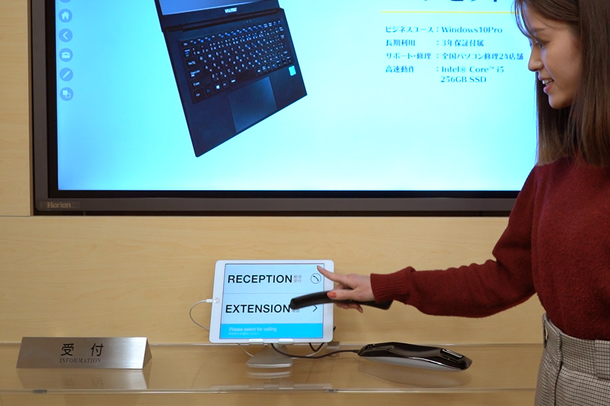クラウド電話と連動して受付タブレットから直接担当者のスマートフォンにかけることができます。実用性だけでなく、エントランスをスタイリッシュに魅せることができます。
