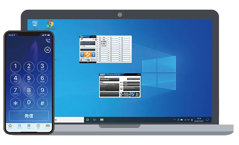 「MOT/TEL(モッテル)」は、インターネット経由で電話機能を提供するクラウド型の電話サービスです。スマホで会社番号を使った発着信ができ、オフィス以外でも電話業務を行えるため、リモートワークや拠点間の内線通話に対応しています。