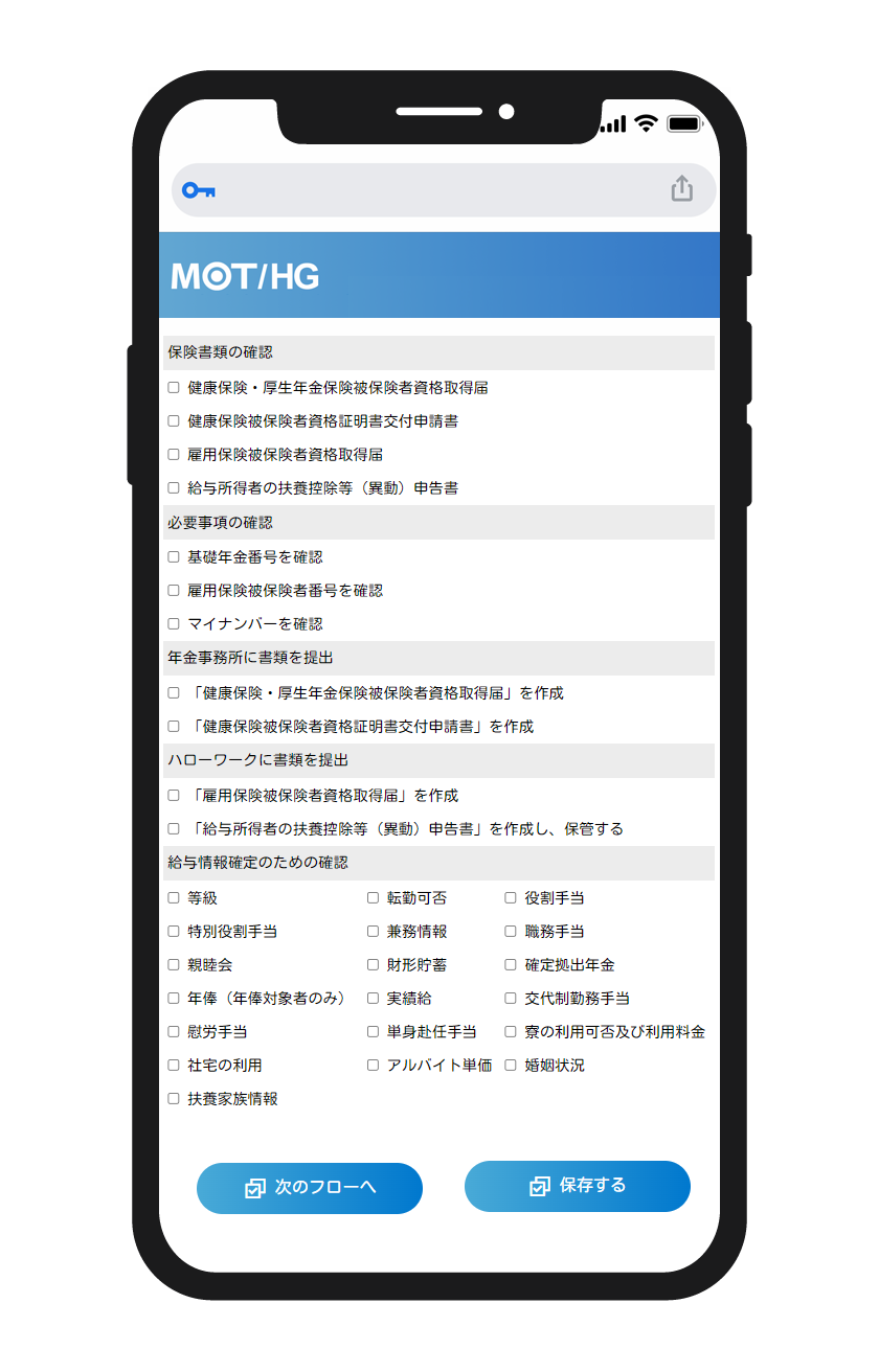 MOT/HGは人事・総務の仕事がスマホで完結。採用、雇用契約、各種申請、届出業務を大幅削減します。
